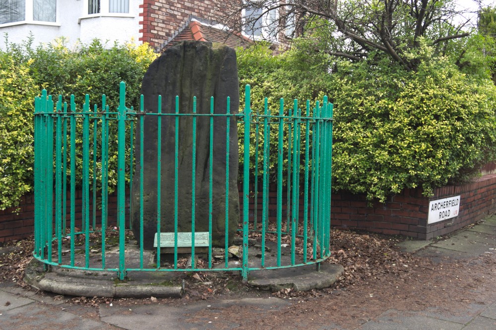 In 1924 the Stone became a Scheduled Ancient Monument, but due to the threat posed by the new housing, it was relocated to its present site in August 1928 by the Liverpool Corporation and the Mersey Building Company. It was protected with the iron railings, and has stood in this state ever since.