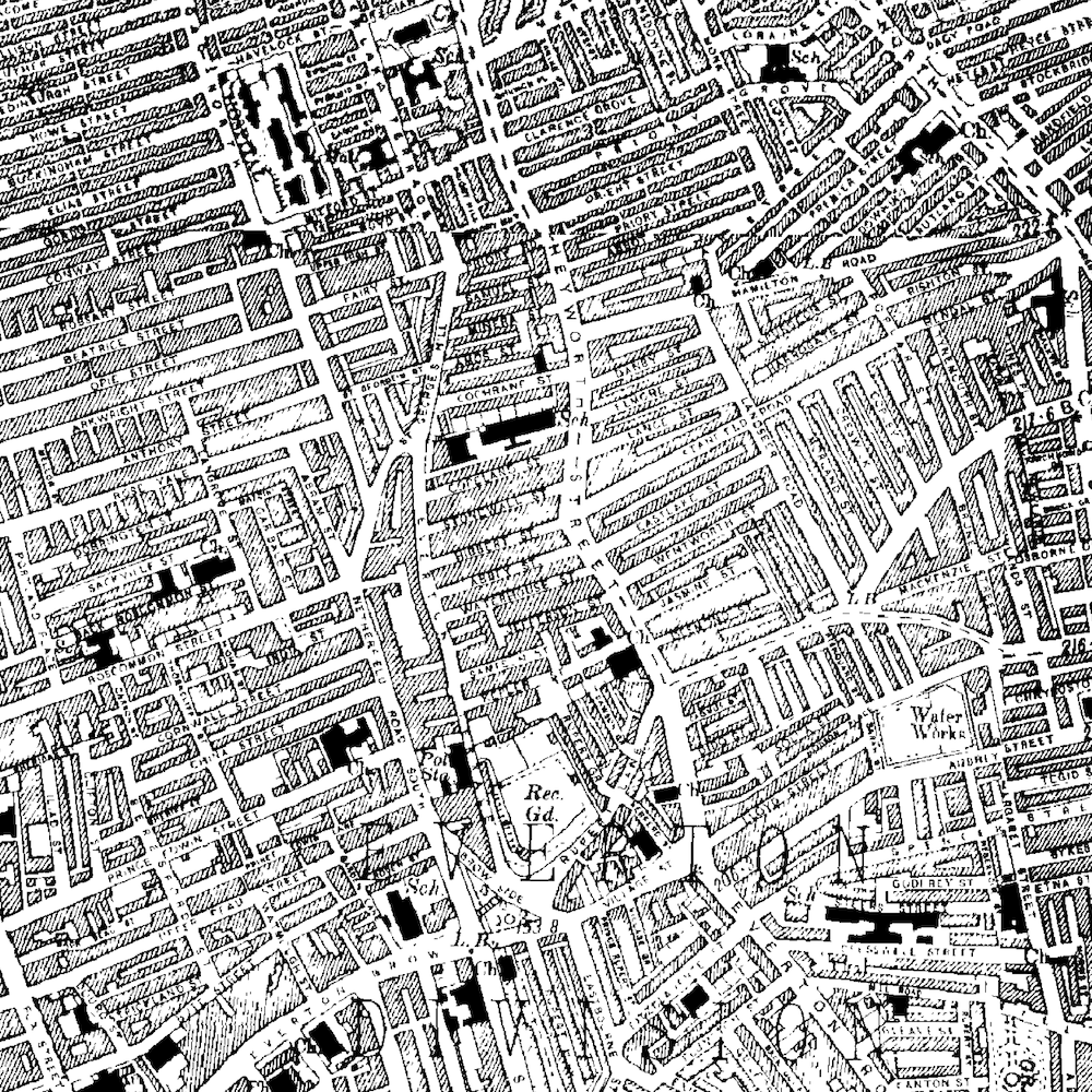 Little remained from previous years save for the main roads and Rupert's Tower. A massive number of terraced houses had been built for the influx of people coming to find a job. Everton in particular was an area populated by Irish migrants; a high proportion of those who settled in this township were Roman Catholic. These terraces now appear to cover the entire area of the 1894 map. One of the largest gaps in this swathe of housing was the first building of the Notre Dame Catholic College.